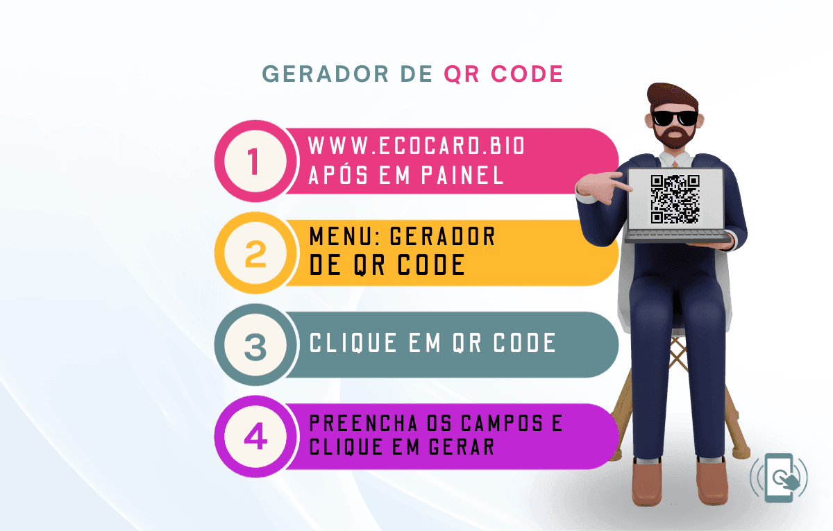 Processo de incorporação fácil do QR code gerado com o Gerador de QR Code no Cartão Digital Ecocard.